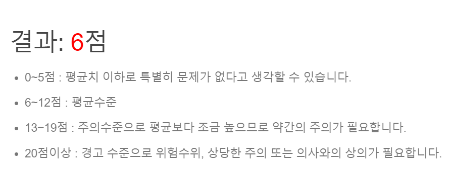 🔻 일단 스트레스 테스트를 통해 나의 스트레스 점수는 어느 정도인지 먼저 알아보세요. 점수가 20점 이상이면 심각한 상태입니다.